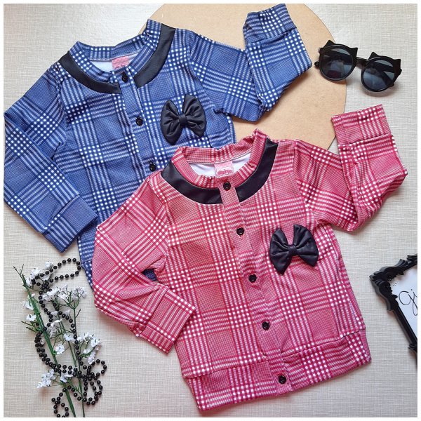 Blusa em suplex xadrez com detalhe de laço.