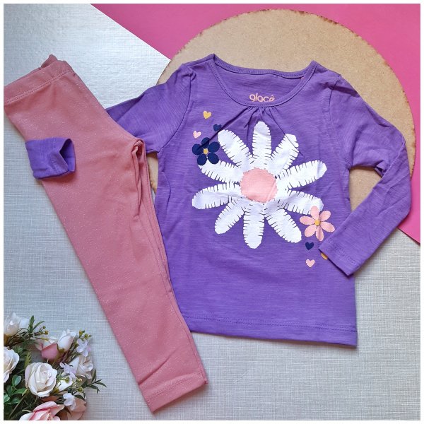 Blusinha em malha com estampa e calça em cotton com glitter.