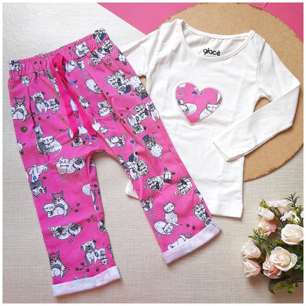 Blusa em cotton com detalhe combinando com a estampa da calça.